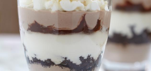 • ضعي في أسفل كاسات التّقديم القليل من صوص الشوكولاتة، وبعدها اغمسي الأوريو في القليل من الحليب، ثمّ ضعيه فوق الصّوص.