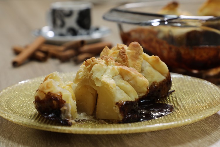 - ضعي قطع من حبات التفاح بوسط العجينة، وأغلقيها بإحكام.