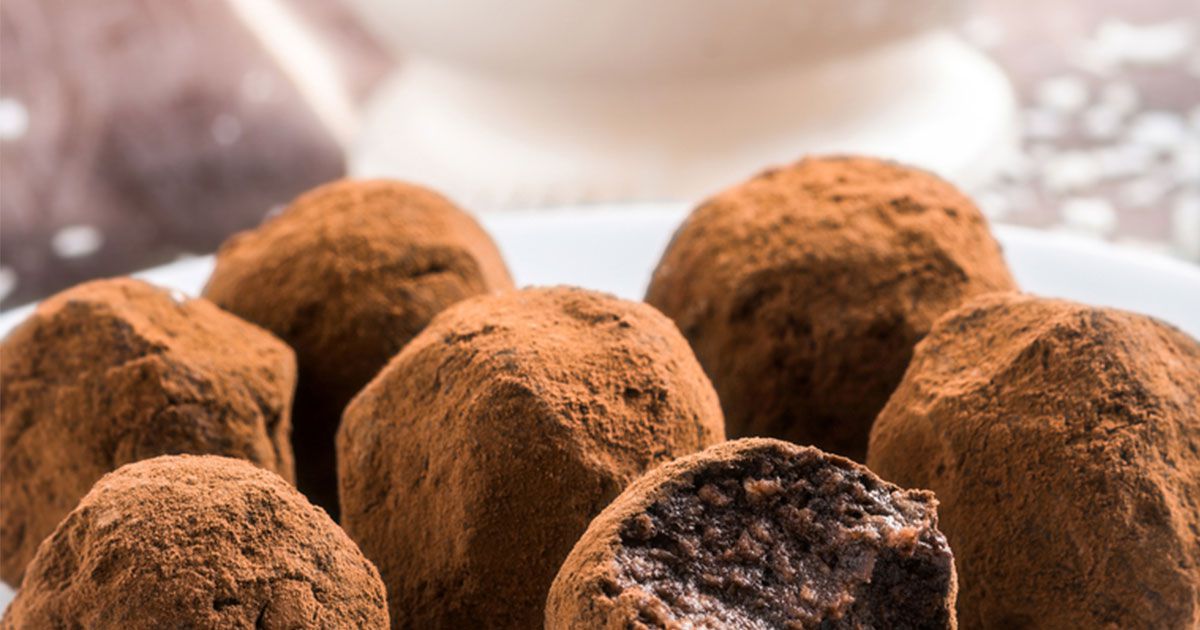 3- شكلي العجينة إلى كرات متساوية الحجم ثم غمسيها بالكاكاو وصفّيها في طبق التقديم.