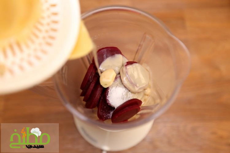 حمص بالشمندر خطوة بخطوة بالصور .. حضري مع مطبخ اكلات أطيب وألذ المقبلات الشامية، وتعلمي نكهة جديدة ومبتكرة من الأطباق المنوعة بالخطوات والصور