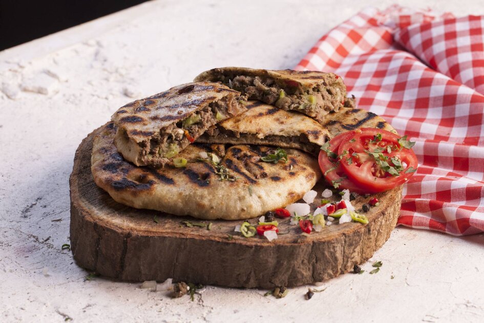 ثم يدهن العيش بالزبدة من الداخل ثم اضافة الكبد والقوانص.
