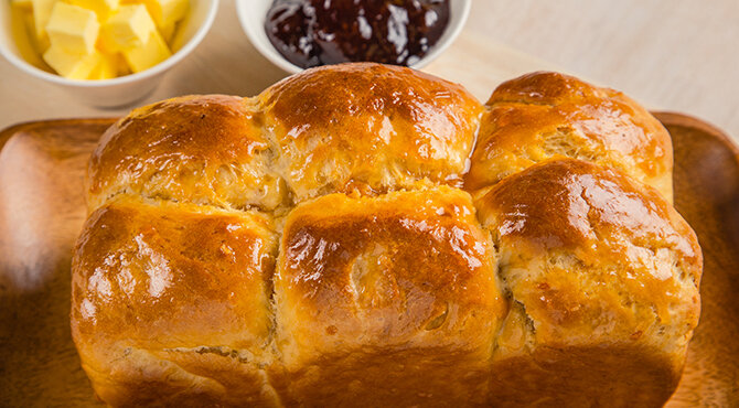 تدخل الي الفرن على الرف الاوسط وفورا تخفض الحرارة الى 170 وتخبز مدة 30- 40 دقيقة حتى ينضج البريوش