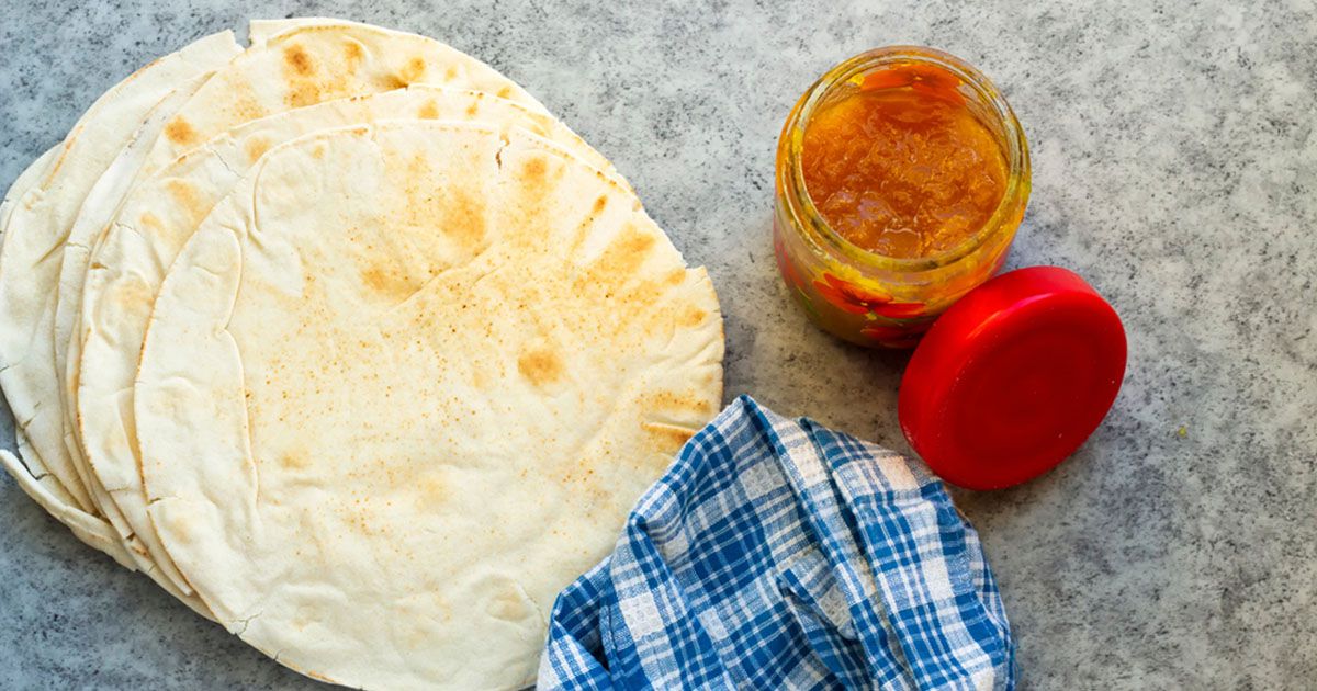 4- حمّي الفرن على حرارة 200 درجة مئوية. ضعي العجين على صينية فرن وأدخليها إلى الفرن لـ10-12 دقيقة حتى ينتفخ الخبز.