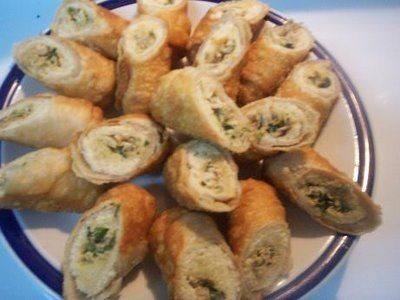 الزعتر و زيت الزيتون و يُتبل الحشو بالملح و الفلفل على النار - يُوضع كمية مناسبة من الحشو على أحد طرفىَ الخبز و يُلَف عليه على هيئة أصبع مع الضغط عليه