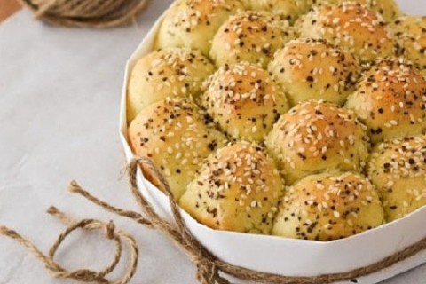- نقوم برص الكرات في صينية دائرية مع ترك مسافة نصف سم بين كل كرة واخرى ثم نتركها تختمر مرة اخرى حوالي 40 دقيقة.