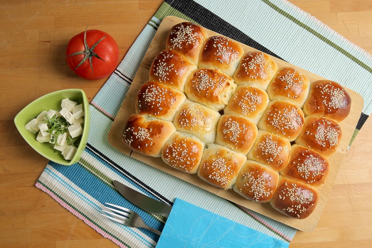 - للتلميع: في طبق ضعي صفار اليبض، الحليب والخل، وباستعمال فرشاة امسحي سطح الكرات. ثم انثري فوقها بعض السمسم.