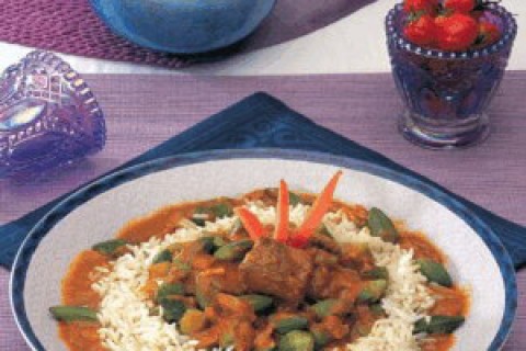 - يُقدّم الطبق مع الأرز المطبوخ.