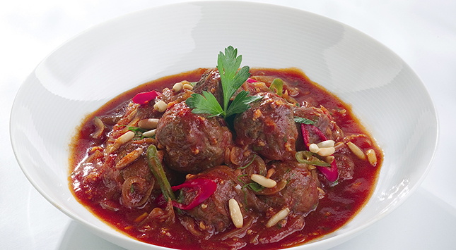 تُحمر كرات اللحم في مقلاة على نار عالية الحرارة لمدة 5 دقائق، وتُترك جانباً، ثم يُضاف الثوم في نفس المقلاة مع 1 ملعقة كبيرة سمن ويُطهى الثوم حتى يكتسب اللون الذهبي ويُرفع عن النار ويوضع الثوم مع اللحم.