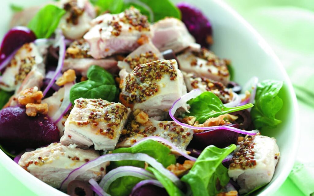 دجاج بالخردل وسلطة السبانخ