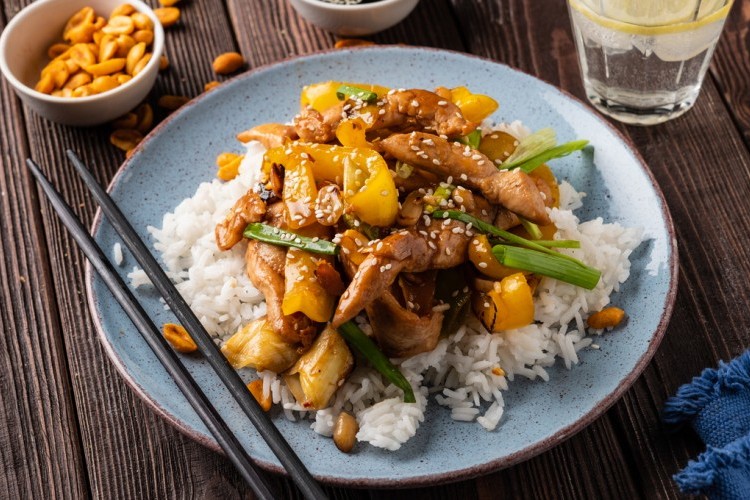 - أضيفي الدجاج وقلبي لمدة دقيقتين واسكبيه وزينيه بالسمسم والكزبرة وقدميه ساخناً إلى جانب الأرز.