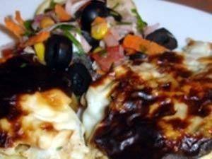 الجبنة الموزريلا ثم تخبز في الفرن حتى تذوب الجبنة وتقدم ساخنة .