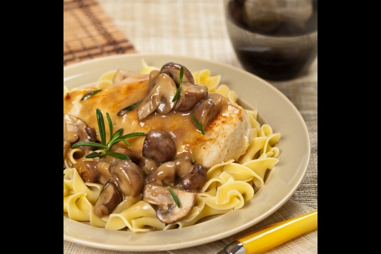 10. ضعي قطع الدجاج في طبق التقديم ووزعي الصلصة والفطر فوقه وقدميه ساخناً.