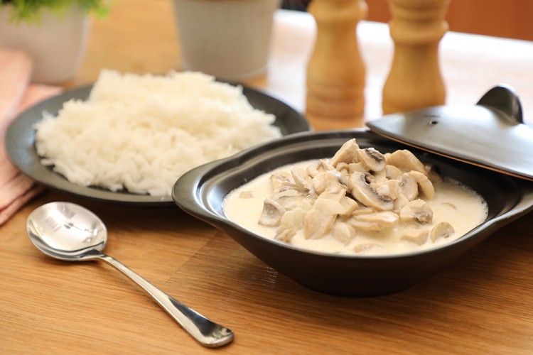 4. صُبي كريمة الطبخ، وغطي القدر لمدة 10 دقائق حتى ينضج الدجاج بشكل كامل وتتسبك الصلصة البيضاء.