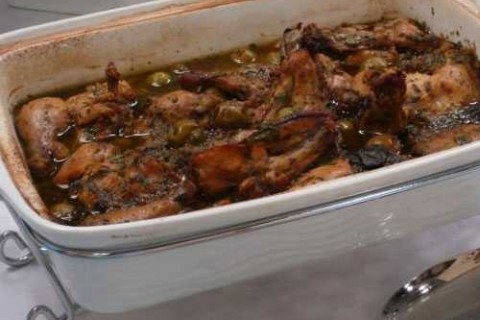 - خليط النقع: في طبق زجاجي عميق، ضعي الثوم، البقدونس، الريحان، الأوريجانو، الملح، الفلفل، الخل، الزيت، عصير الليمون، الغار، القراصيا، الزيتون، قلبي لتختلط المواد مع بعضها البعض.