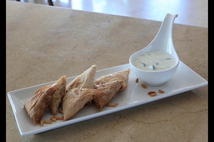 يقطّع خبز المرقوق الى مستطيلات متساوية، ونبدأ بوضع حشوة الدجاج داخل كل واحدة، ومن ثم تلفّ بشكل السمبوسك وتدخل الى الفرن لمدة 7 دقائق حتى تصبح محمّصة.