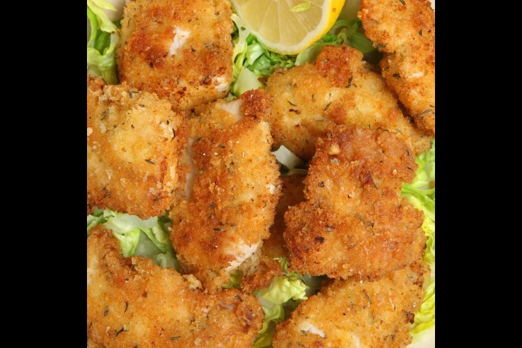 4. اغمسي قطع الدجاج في مزيج زيت الزيتون والثوم ثم اغمسيه في طبق البقسماط والجبن البارميزان.