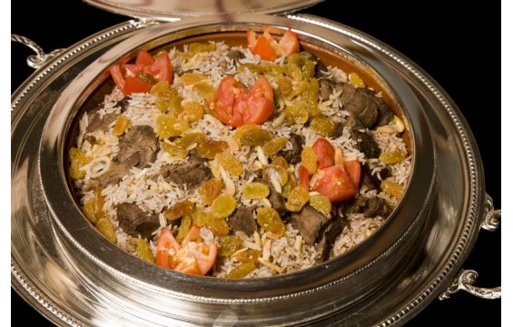 2- يقلّى البصل مع الثوم ثم يضاف اليه اللحم المفروم والبهارات، ثم يضاف أرز بسمتي ويغمر بالماء ويترك لمدة نصف ساعة حتى النضوج.