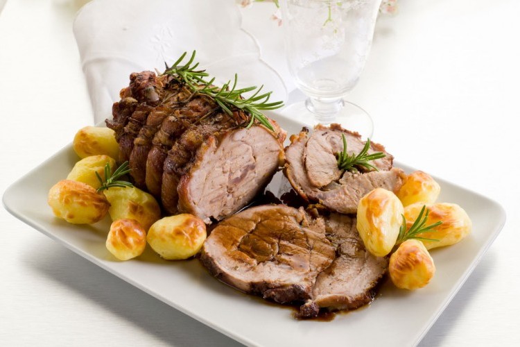 7. أخرجي الطبق من الفرن واتركي اللحم ليبرد قليلاً ثم قطعيه شرائح ووزعي الخضار على اللحم في طبق التقديم ووزعي صوص اللحم من طبق الفرن وقدميه ساخناً.