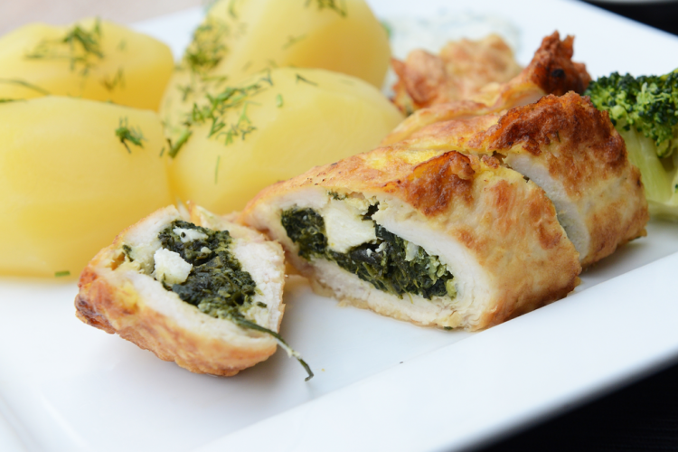 رولات الدجاج بالسبانخ والجبن للرجيم