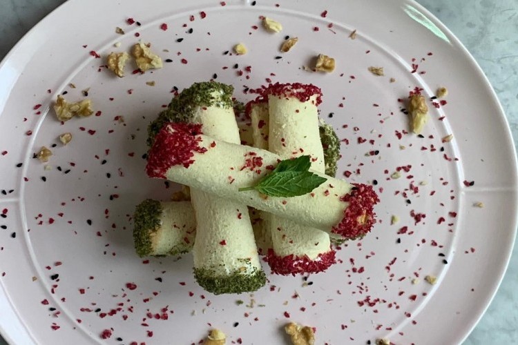 - اغمسي طرف الرولات بمزيج اللبنة وقدميها فوراً.