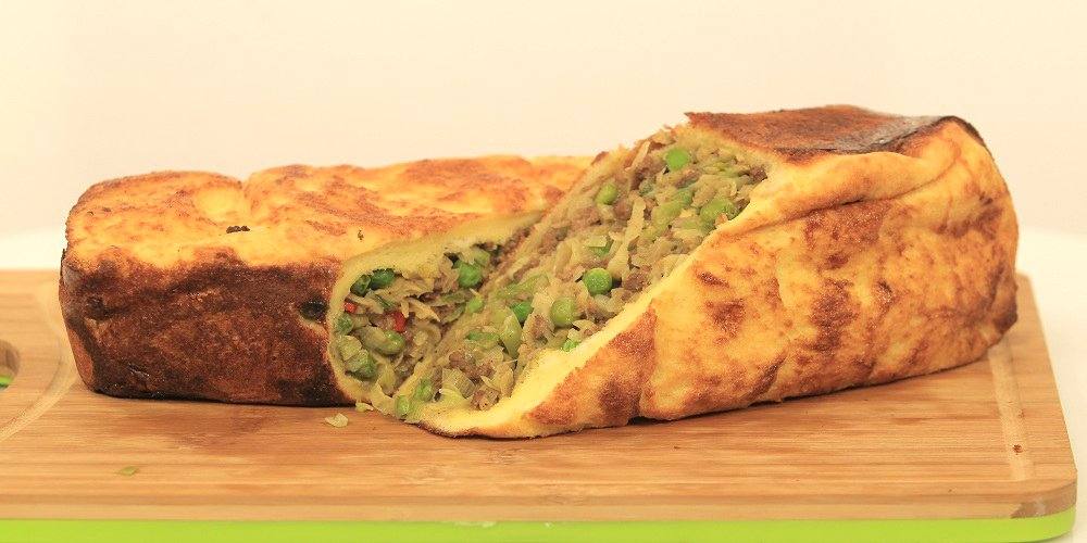 1. ضعي بصل وثوم مفروم في مقلاة على النار و اضيفي اليها لحم مفروم وكاري وملح وفلفل ابشري البطاطس واضيفيها للمقلاة .