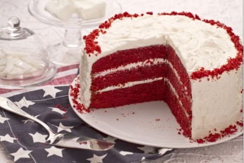 - نخلط المكونات الجافه مع بعضها(الدقيق والكاكاو والباكينج بودروالبيكربونات واللون الاحمر) ثم نضيفهم الي الخليط علي اكثر من مره مع الضرب بالمضرب.