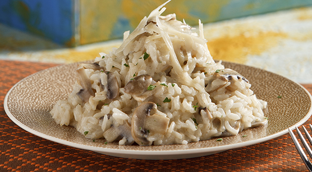 بعد 5 دقائق من رفع الثوم من القدر، يضاف الفطر ويطهى على نار منخفضة الحرارة مع التقليب المستمر، ويضاف الحليب للحفاظ على طراوة الفطر، ثم يضاف الأرز والكريمة ويقلبا.