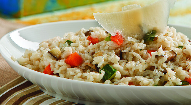 يضاف المرق ويُطهى دون غطاء لمدة 9 دقائق، ويُقلب الخليط جيدًا ويُطهى لمدة 9 دقائق أخرى.