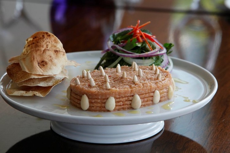 يفرم سمك السلمون بشكل ناعم، ويوضع في الثلاجة حتى يبرد، ومن ثم يضاف إليه الكرّاث المفروم بشكل ناعم والبرغل والبهار الابيض والفلفل الحار وملح البحر وزيت الزيتون والبقدونس والكزبرة الخضراء والنعناع وعصير الليمون الحامض، ويخلط المزيج جيداً حتى يصبح متماسكاً.