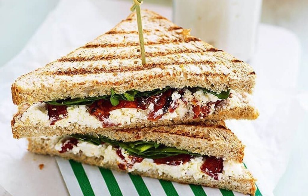 غيّر الروتين مع وصفة ساندويتشات التوست بجبن الريكوتا والطماطم المحمصة ببطء والسبانخ.