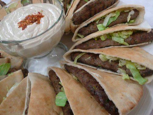 - يحشى الخبز العربى الساخن بالكفتة بحيث نفتح الخبز بعد تقطيعه إلى نصفين