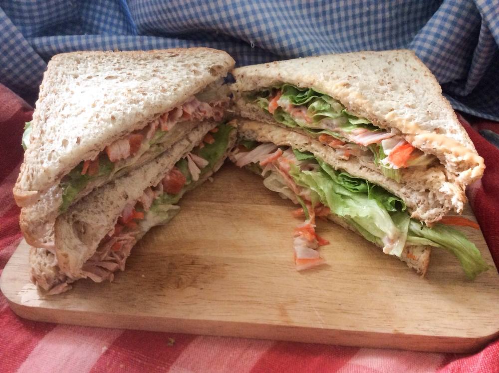 - تفتح السندويتشات وتحمص ثم تدهن ملعقة صغيرة من الخردل على جهة داخلية واحدة من السندويتش، يضاف نصف خليط التونة فوق الخردل ثم تضاف الطماطم والجبن.