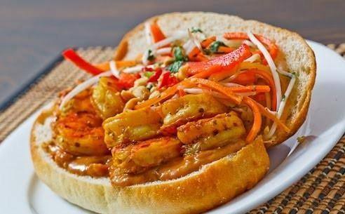 - ضعي الجمبري بصوص الثوم في الساندويتش وفوقه الخس والفلفل والمايونيز ويقدم .