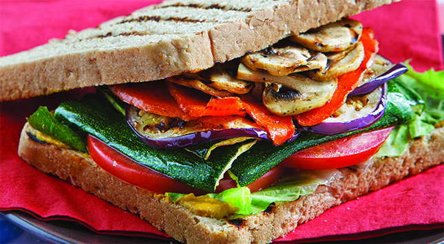 توضع شريحة من الخبز في طبق نظيف، ثم تُرص فوقها الخضروات المشوية في طبقات أو حسب الترتيب المرغوب. يُفرد الخردل على حشو الخضروات، ثم توضع شريحة الخبز الأخرى.