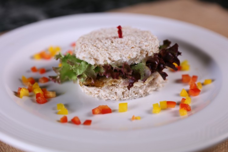 4. زيني طبق ساندويش الدجاج بالفليفلة الملونة المقطعة وقدميه.