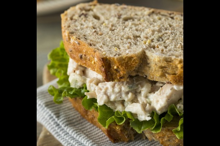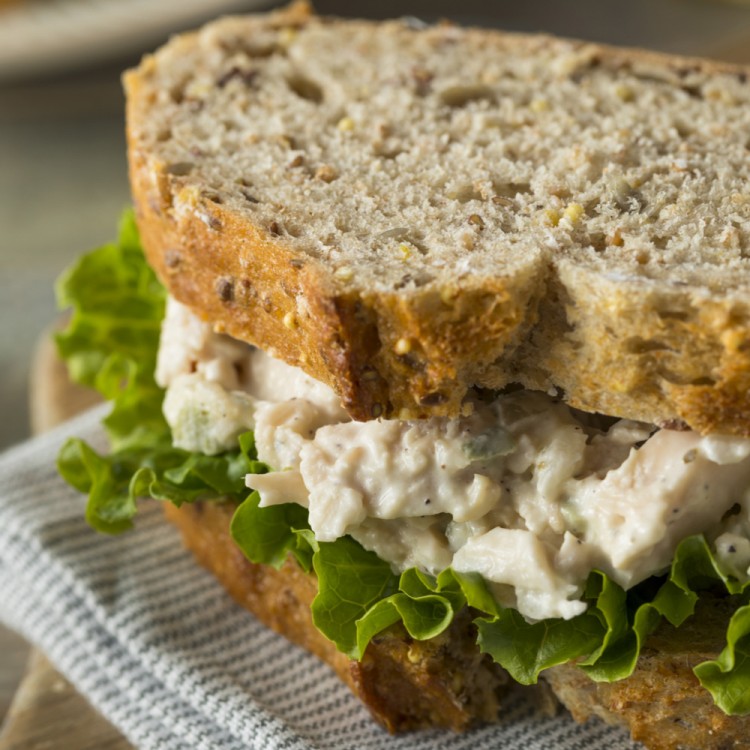 4. ضعي الخس على أربع قطع توست ووزعي فوقه حشوة الدجاج بالمايونيز وغطي بالقطع الأربعة المتبقية وقدميه فوراً.