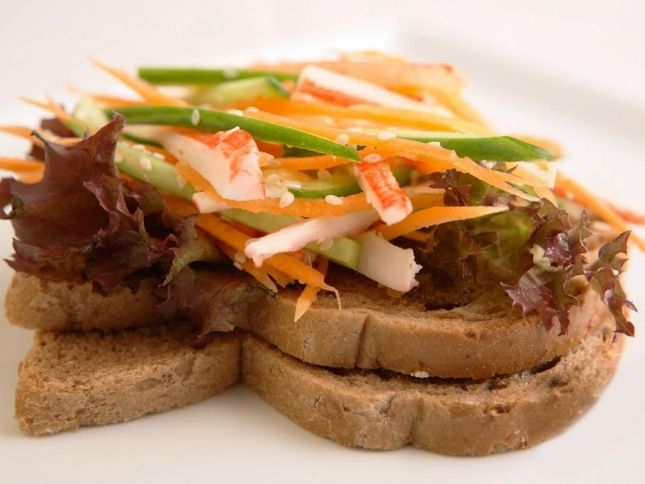 2- يُحضّر كلّ سندويش، وفق التالي: شريحة من “التوست”، فورقة من الخس، فنصف كميّة خليط السلطعون، فشريحة من “التوست”. ويُقدّم بارداً.
