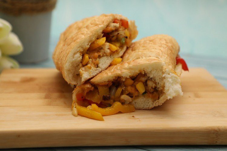 - وزعي الخليط بالخبز الفرنسي، وقدمي الساندويش ساخناً.
