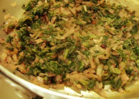على النار لمدة عشرة دقائق . - يقدم السبانخ مع طبق من الأرز المفلفل.