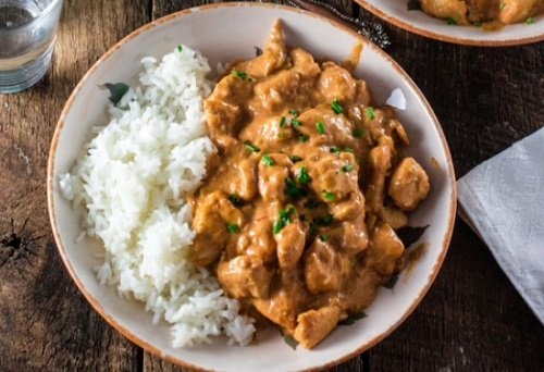 ستروجانوف الدجاج بالكريمة من الاكلات الروسية المشهورة ، ستروجانوف الدجاج بالكريمة لا يقدم عادة مع الفطر والبصل ولكن مؤخرا يقدمونه مع البصل والفطر .