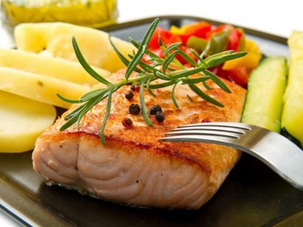1. يتبّل السلمون بالزيت والريحان وإكليل الجبل وخل البلسميك والملح والفلفل، ثم يشوى على نار عالية لمدة 10 دقائق.