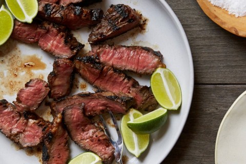- ثم على جريل ساخنة جدا نشوى قطع اللحم لمدة خمس دقائق ثم تقدم فورا بالهنا والشفا.