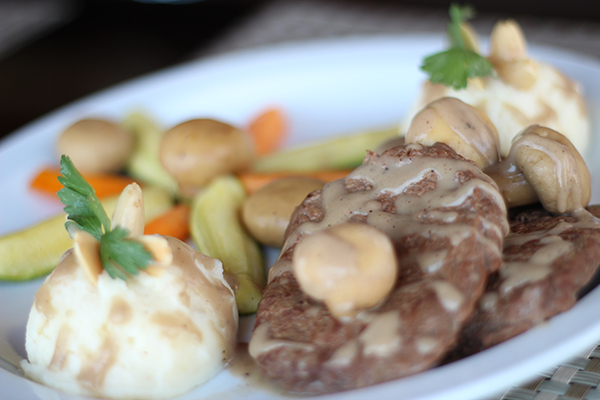ستيك بالفطر مع بطاطا مهروسة وخضار سوتيه.. لوجبة متكاملة