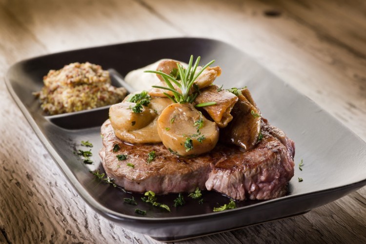 - ضعي الستيك في طبق التقديم وصبي مزيج الصلصة والمشروم وقدميه ساخناً إلى جانب الخضار المسلوقة أو البطاطس المهروسة.