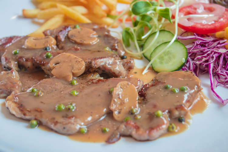 ستيك لحم بصلصة الفطر