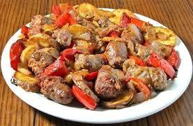 - يُرفع خليط السجق من على النار، ويُسكب فى صحن التقديم، ويقدم مع الخًبز.