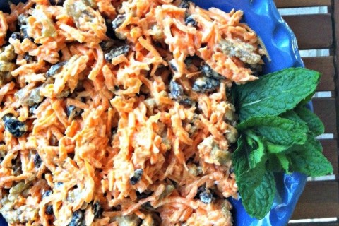 4. فى طبق التقديم نضع الجزر ويوزع فوقة الزبادى ثم ينثر فوقة الريحان المفروم ويقدم بالهنا والشفا.