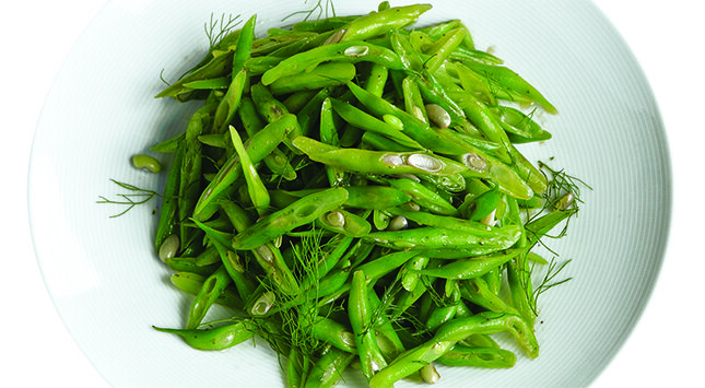 تقطع الرؤوس من 1 رطل من الفاصوليا الخضراء، ثم تقطع الفاصوليا إلى قطع بطول 2 بوصة وتوضع في ماء مغلي وتطهى دون غطاء لمدة من 5 إلى 7 دقائق، وبعدها تصفى وتوضع في ماء مثلج لإيقاف عملية الطهي.