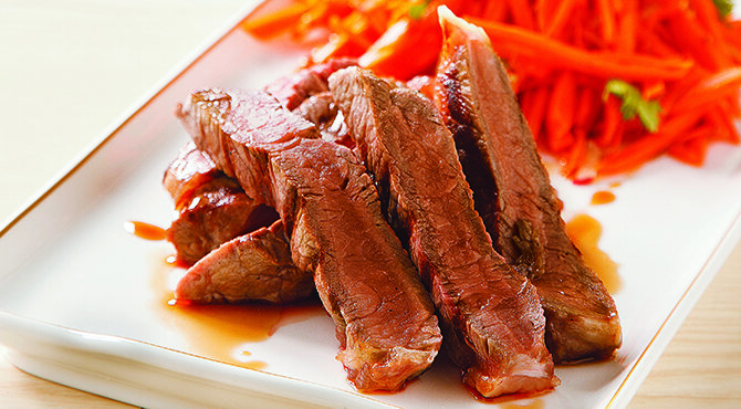 • 1 قطعة من ستيك كفل البقرة المشوي (م إلى شرائط)