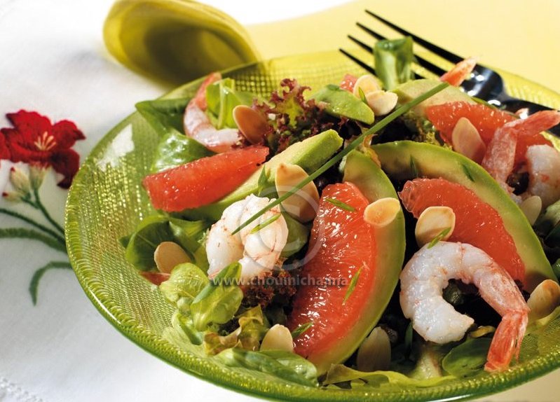 سلطة الأفوكادو، البرتقال الهندي والجمبري